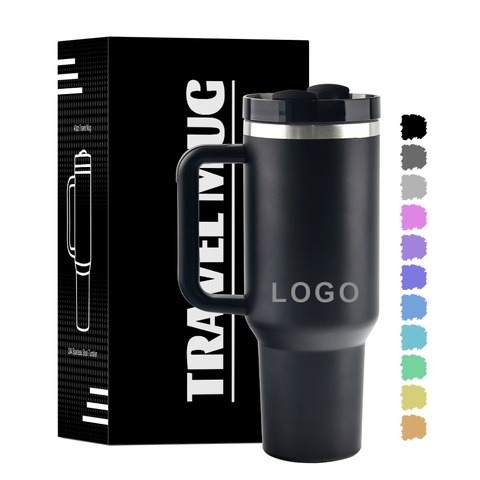 Tumbler personalizzato 40 oz a doppia parete in metallo in acciaio inox sottovuoto tazza da caffè 40 oz da viaggio per auto tazza con manico in paglia