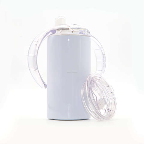 Atacado 12oz Aço Inoxidável Sublimação Straight White Kids Sippy Cup Tumblers Com Alça